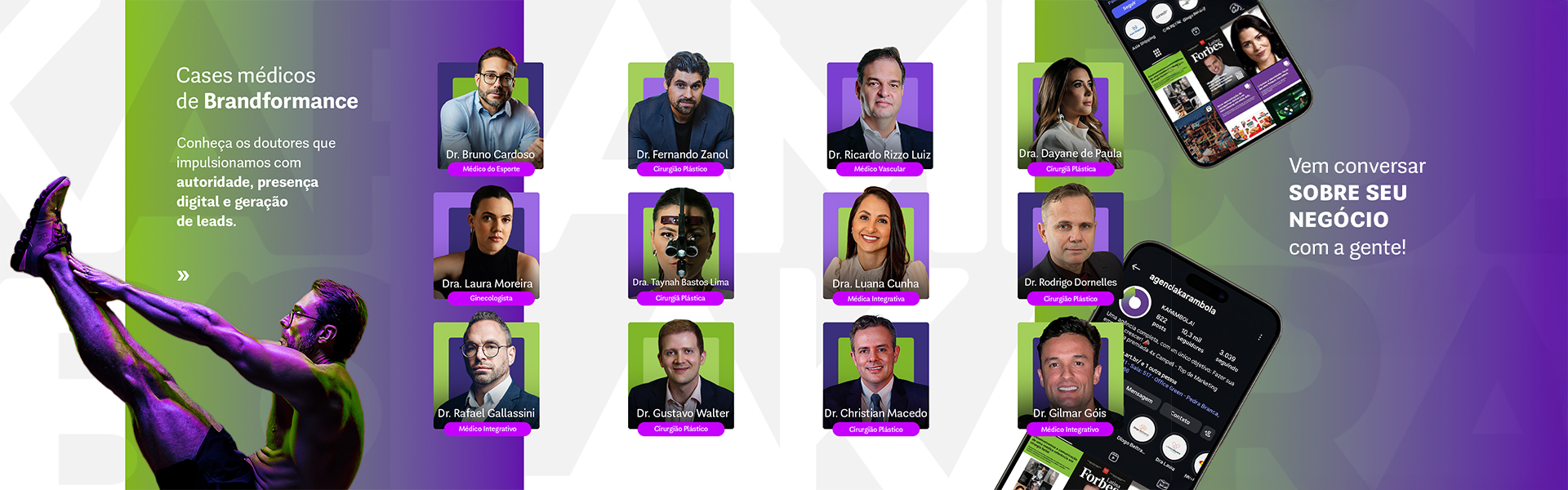 Nosso time é composto por mais de 34 profissionais multidisciplinares das áreas de saúde, marketing, tecnologia, comunicação e negócios. Criamos um sistema próprio de marketing e estratégia digital, desenvolvido internamente, que acelera o crescimento sustentável de nossos clientes em até 6 meses.